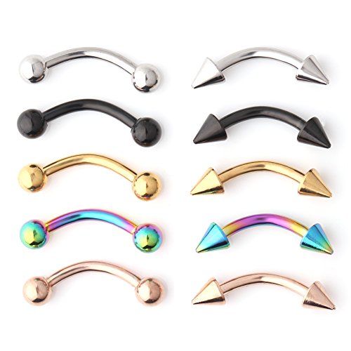 Details About Hot 16g Gauge 12 Pcs Eyebrow Piercing Rings Bar Tragus Curved Barbell Us Stock